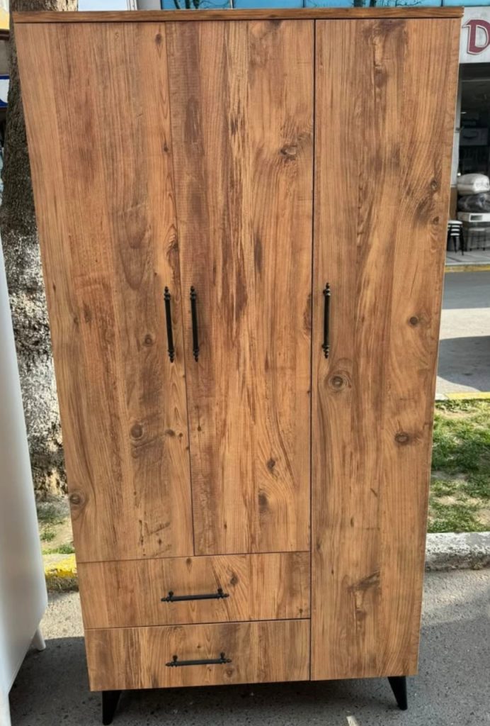 Evinize sıcaklık ve düzen katacak bu şık gardırop, hem estetik hem işlevselliği bir araya getiriyor. Siyah metal kulpları ve açılı ayaklarıyla modern tasarımın en güzel örneklerinden biri.